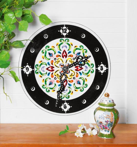 This wall clock with the pattern of Portuguese tiles is guaranteed to be an eye-catcher and only is far too good for the kitchen. The extraordinary design and the colourful layout gets its very special frame by the black border. Create your new piece of jewelry for your home.