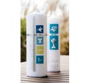 Individual candles for various occasions can be easily designed with this wax motif. The motif "faith" can be used as a whole or in individual parts. Simply cool the wax motif in the refrigerator for some time to make it a little harder, then cut out the individual squares with a ruler and a cutter knife and place them on the candle.