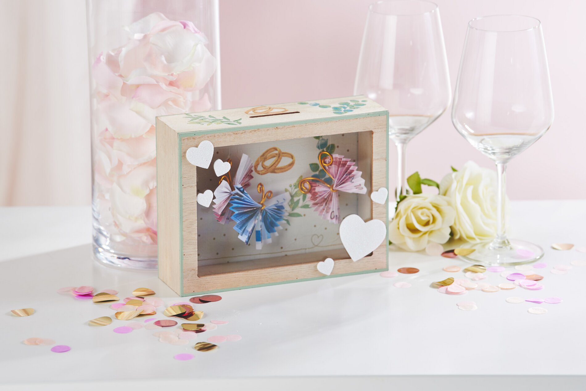 Finally, stick some decorative foam rubber stickers on the money box - and the money gift is ready!
