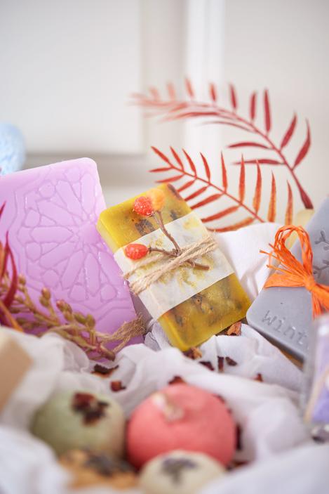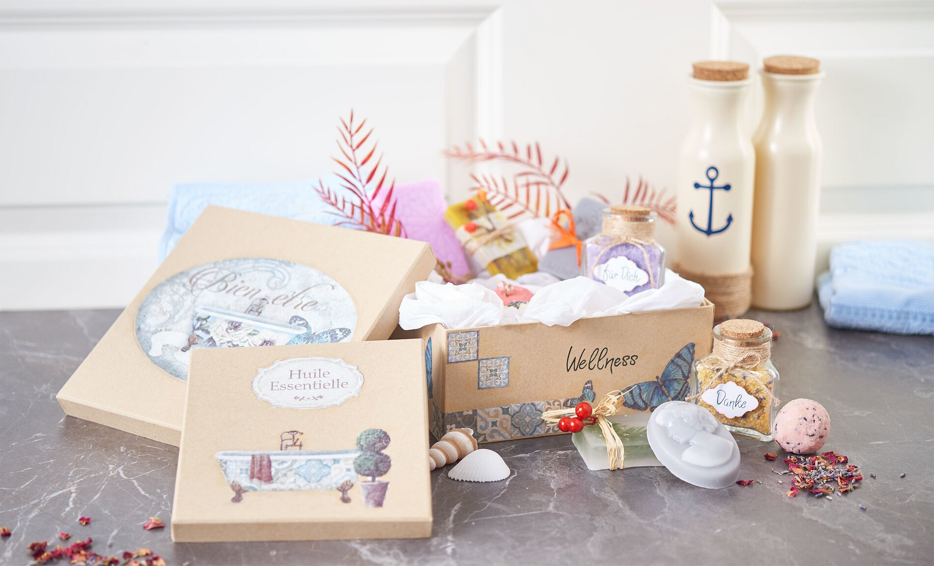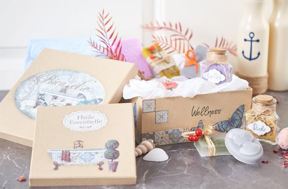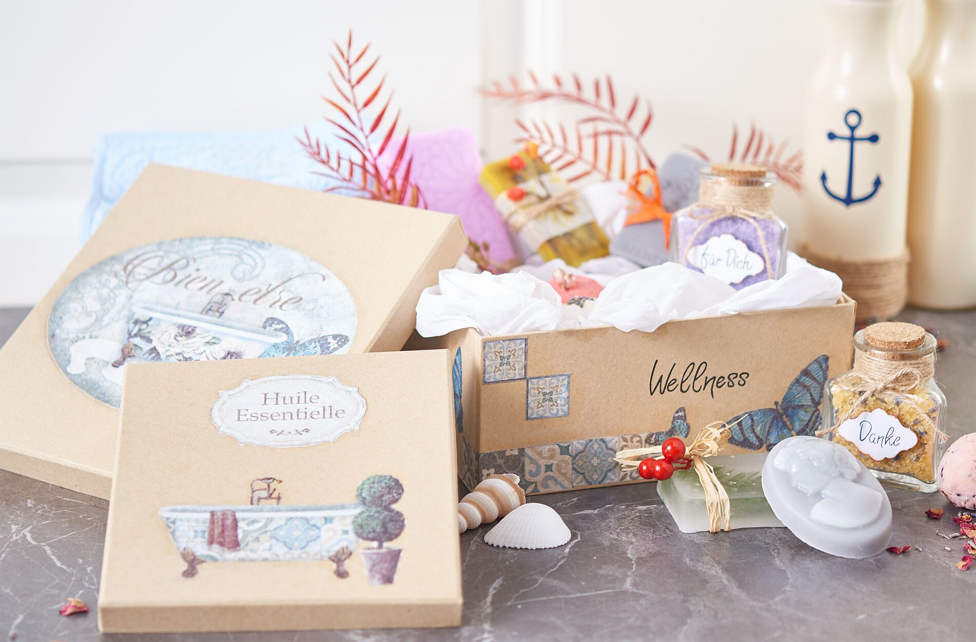 Are you looking for a great gift idea? This wellness box with homemade wonderfully fragrant soaps and bath balls certainly has that special something. Already the production of the soaps and bath balls contributes to relaxation..