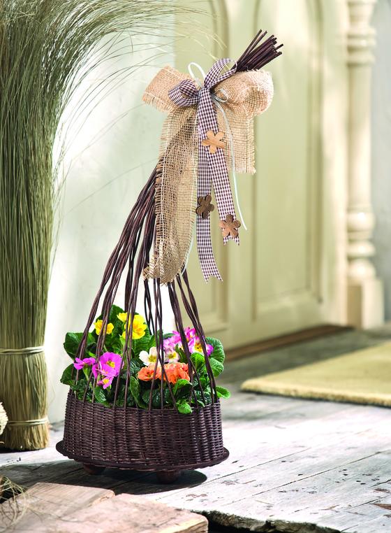 A real classic are floristically decorated plant baskets with long, converging branches at the top. This variation with the slightly inclined look could soon be on your doorstep!