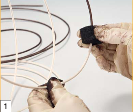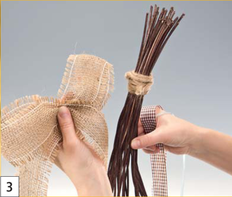 Carefully bend these ends and braid them in a rhythm of "before one, behind one", i.e. each bar goes around the next one on the outside and stays behind the next but one on the inside, the bars hold each other after drying (see picture 2).