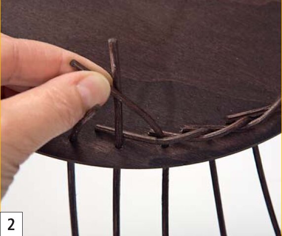 The Rattan cane now let it dry completely. The Wooden balls fix it under the floor with wood glue