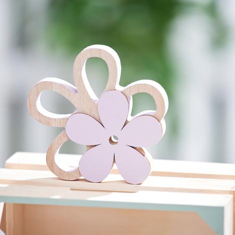 While you wait for the white paint to dry, paint more clay pots and a wooden flower in fresh colors, according to your personal taste. You can also paint the edges of the wooden boxes with a little paint.