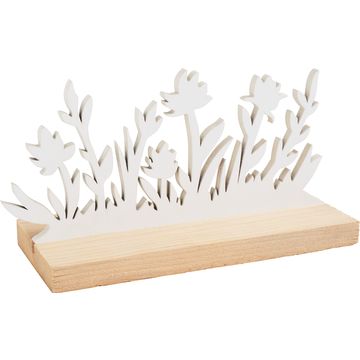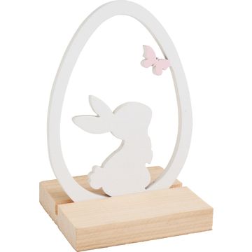 The elegant combination of white-painted bunny figures and a natural wooden base gives your living space a natural charm. With a height of 17 cm and a length of 30 cm, this decoration fits perfectly on any table or shelf and adds a stylish accent.