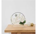 With the Wooden lettering "Frohe Weihnachten" you can raise your Christmas decorations to a new level. The lettering made of poplar plywood is magnetic, approx. 27.8 x 15,0 cm in size and can be attached to a metal ring or metal wreath with a Ø of 25 cm. But of course, the lettering can also be simply decorated in a wreath of fir branches.