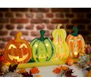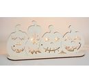 This woodenStanding figure pumpkin has a size of approx. 52 cm x 12,5 x 23,5 cm. The material is high-quality plywood with a thickness of approx. 0.5 cm. On the back of the wooden pumpkins there is a strip to which a chain of lights with 10 lights can be attached. The chain of lights is not included in the delivery