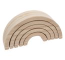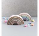 This wood rainbow consists of 5 parts with a size of approx. 18 x 9 x 5 cm. The smaller rainbows are 15 x 7.4 cm, 12.5 x 6.2 cm, 9.6 x 4.7 cm and 7 x 3.5 cm.The material is untreated pine wood.