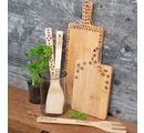 This wooden spoon is ideal in the kitchen as a cooking tool or as decoration. When worked on with a branding pen, it quickly becomes a great piece of decoration. So with little sayings, names and pretty motifs wonderful unique pieces can be made. A treatment with colours should be tested before, because the treated wood does not guarantee an optimal result.