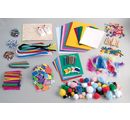 An XXL Mega craft box with 2.500 parts - a huge crafting fun for kids! All materials in this XXL package are matched to each other, because everything is at hand and a sense of achievement is guaranteed. The XXL craft box contains almost everything needed for crafting. Included are, for example, fluffy feathers, foam rubber, pompoms, felt blanks, tinsel, papers, paper strips, wiggle eyes, gems, paper cardboard, cords, a 32-piece wooden motif plate for designing, which can also be used as a painting template, craft ideas, patterns and much more. Only a pair of craft scissors is additionally needed, this is not included in the package.