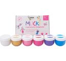 Zestaw farb do malowania palcami MUCKI "King's Children" został opracowany specjalnie dla dzieci w wieku od 2 lat. 6 małych kolorowych pojemników ma pojemność ok. 50 ml i można je łatwo zamknąć dzięki zakręcanej pokrywce.