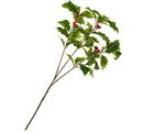 Gałązka ostrokrzewu z jagodami ma długość ok. 40 cm i idealnie nadaje się do dekoracji zimowych. Czerwone jagody tworzą wspaniałe akcenty. Wykonana z tkaniny pajęczej i nadaje się do użytku na zewnątrz.