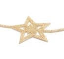 Piękna brokatowa girlanda "Stars" z 10 błyszczącymi gwiazdkami. Girlanda ma szerokość ok. 75 mm i długość 1 metra. Ta brokatowa g irlanda jest ozdobiona brokatem z jednej strony, a gwiazdy mają średnicę ok. 6,3 cm i 7,8 cm. Girlanda ma pętlę do zawieszania o długości ok. 5,5 cm z otworem do zawieszania o średnicy ok. 1 cm. Projekt został wykonany w Niemczech.