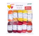 Od jasnożółtego przez pomarańczowy do ciemnoczerwonego - ta kolekcja Gründl Cotton Quick Mini "Shades of Yellow and Red" zawiera 10 harmonijnie dobranych włóczek szydełkowych we wspaniałych odcieniach kolorów. Każdy kłębek ma masę ok. 15 g i długość ok. 37,5 m. Wykonane w 100% z bawełny merceryzowanej, gazowanej i czesanej. Do optymalnego przerabiania zaleca się stosowanie igieł w rozmiarze 3-4.