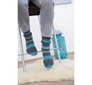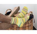 Proszę przeciwdziałać zimnym stopom i robić na drutach kolorowe skarpetki w paski dla całej rodziny. Z ok. 100 g włóczki można wykonać parę skarpetek do rozmiaru 46.
