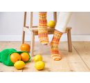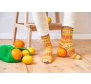 Miękka wełna skarpetkowa o dużej objętości z gradientem kolorów, który rozwija się podczas dziania. Zawartość poliamidu sprawia, że dzianiny są wytrzymałe, a włókno "superwash" zapobiega filcowaniu się w pralce w temperaturze 40°C w delikatnym cyklu. Mogą Państwo dziergać nie tylko przytulne skarpety dla młodszych i starszych, ale także ciepłe swetry, kurtki, rękawiczki, czapki i szaliki. Na sweter w rozmiarze 38 potrzeba ok. 500 g wełny.