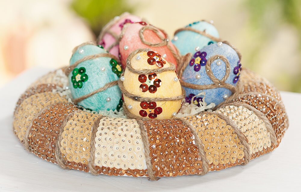 Dekoracyjne jajka wielkanocne z techniką cekinową