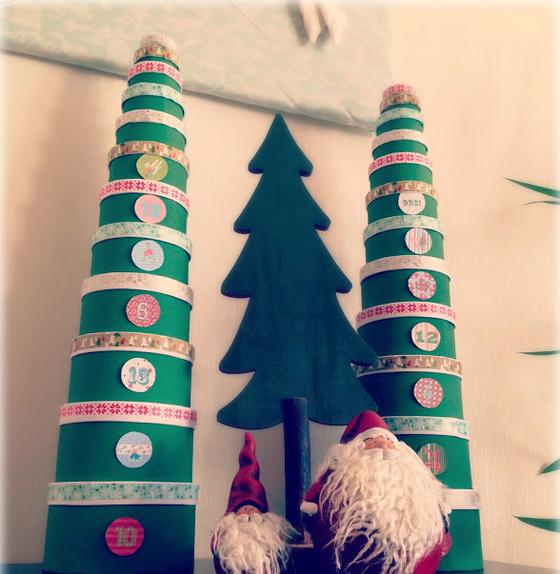 Najpierw całkowicie pomaluj pudełka zieloną farbą akrylową. Kolory mogą się różnić w zależności od potrzeb, ale zieleń jest szczególnie zalecana w okresie adwentowym. Wieczko pudełka należy zagruntować na biało. Krawędzie pokrywek można następnie pokryć na przemian taśmą maskującą, wstążkami i paskami papieru. Daje to kolorową mieszankę dekoracji.
