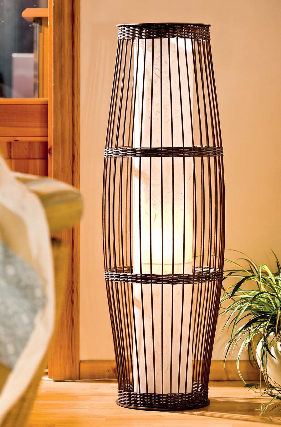 Odwróć lampę do góry nogami i spleć trzcinę w rytmie "przed jednym, za jednym", tj. każdy kołek przechodzi na zewnątrz następnego i pozostaje wewnątrz za przedostatnim (patrz zdjęcie 5).
