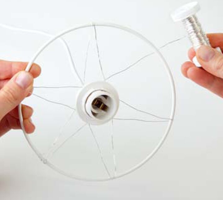 Teraz przymocuj drugi pierścień lampy w odległości 33 cm od górnej krawędzi wewnątrz okrągłych prętów.