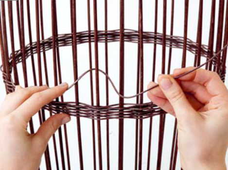 Wypleć 18 rzędów trzciny wzdłuż dolnej krawędzi, sześć rzędów pod i sześć rzędów nad stałym pierścieniem lampy (patrz rysunek 3).