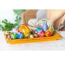 Wystarczy pomalować je marmurem lub farbą odporną na warunki atmosferyczne, aby stworzyć piękną, przyciągającą wzrok dekorację. Państwa kreatywność nie ma granic. Ozdobione na tacy ze świeczkami i miniaturkami lub w połączeniu z naturalnymi materiałami w domowym wieńcu wielkanocnym, ozdobne jajka są idealne.