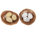 Te wspaniałe jajka VBS "Sumy" wgnieździe to opakowanie 2 sztuk w kolorach białym i jasnobrązowym. Jajka nakrapiane mają rozmiar ok. 2 cm, Ø 1,4 cm. Brązowe gniazda mają ok. 6 cm średnicy i ok. 2 cm wysokości.