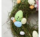 38 dekoracyjnych jajek w barwnej mieszance kolorów. Jajka ozdobne w plamki są wykonane ze styropianu. Jajka mają rozmiar około 2-5 cm. Kolorowa mieszanka jajek składa się z kolorów różowego, zielonego, białego, żółtego, niebieskiego i pomarańczowego.