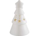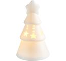 Jodła LED VBS wykonana z matowej białej porcelany z ciepłym światłem. Małe drzewko ma wymiary ok. 7,7 x 12,6 cm. W zestawie znajdują się 3 baterie LR44. Porcelana jest nieszkliwiona i niemalowana.