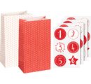 Łatwe tworzenie kalendarzy adwentowych! Dzięki temu zestawowi mogą Państwo szybko i łatwo rękodzieło w postaci wspaniałego kalendarza adwentowego. Torebki w kolorze czerwonym z białymi kropkami i białym z czerwonymi kropkami oferują mnóstwo miejsca na drobne upominki i słodycze. Kalendarz w nowoczesnym stylu, który można szybko i łatwo rękodziełem. Jeśli chcą Państwo, można również dodać małe papierowe przywieszki, dzwoneczki, elementy dekoracyjne i wstążkę. To nada temu zestawowi spersonalizowany wygląd.