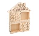 Kalendarz adwentowy VBS "Dom" Długość 37,7 cm, szerokość 8,8 cm i wysokość 48 cm. Wspaniały produkt od VBS! Domek ma 24 ponumerowane szufladki o wymiarach wewnętrznych ok. 2,7 cm x 3,6 cm i wysokości 2,9 cm. W szczycie znajdują się małe okienka, a z przodu 2 otwory o wymiarach ok. 14,5 cm x 12,8 cm i głębokości ok. 6,9 cm. Materiałem jest sklejka.