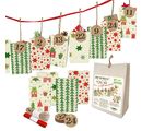 Wspaniały zestaw kalendarza adwentowego "By Nature" bez plastikowych opakowań! Zestaw składa się z 50 elementów i zawiera wszystko, czego potrzeba do stworzenia eleganckiego kalendarza adwentowego. 24 torebki wykonane z papieru trawiastego w 4 różnych wzorach mają wymiary ok. 14,5 x 9,0 x 6,0 cm i gramaturę ok. 160 g/m² .