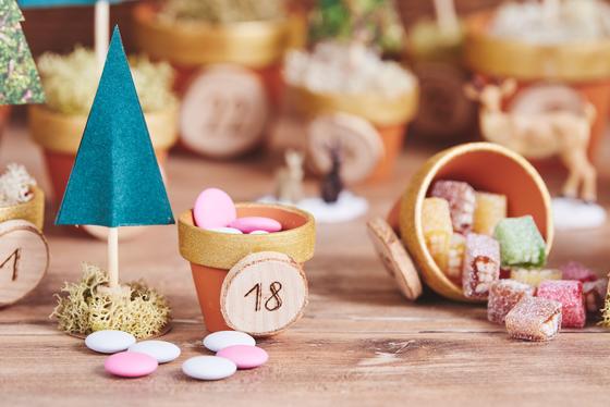 Teraz możesz również udekorować kalendarz adwentowy leśnymi zwierzętami pomiędzy doniczkami.