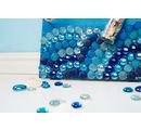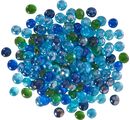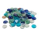 Szklane kamienie mugoli "Kolorowe", opakowanie XXL o zawartości 1 kg. Mozaika składa się z okrągłych kamieni o wyjątkowym, opalizującym połysku. Kolory są bardzo zróżnicowane i wahają się od odcieni brązu, przez zieleń i błękit, aż po przezroczyste.