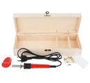 Świetna kolba do brandingu w wysokiej jakości drewnianym pudełku ze stylowym zapięciem. Długość kabla wraz z wtyczką wynosi ok. 1,48 m. Drewniane pudeł ko do przechowywania żelazka ma wymiary ok. 31,5 x 11,5 x 6 cm i posiada trzy przegródki o wymiarach 4 x 10 x 3,7 cm, 5,5 x 10 x 3,7 cm i 19,7 x 10 x 3,7 cm. Przegródki w przegródkach można w razie potrzeby usunąć.