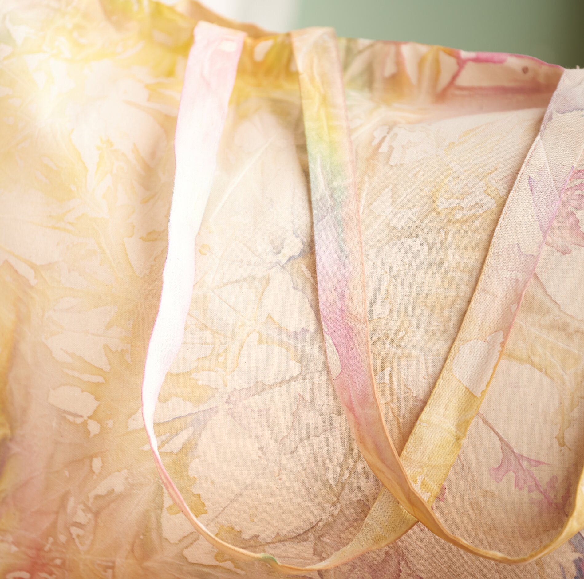 Gdy kolor zostanie dobrze rozprowadzony, ostrożnie usunąć sznurek lub gumki. Ostrożnie rozłożyć shoppera, nie naciągając zbytnio tkaniny. Pozwoli to zachować gradienty kolorów i wzory.