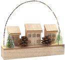Czarujący kompletny zestaw VBS "Zimowa wioska z łukiem świetlnym" o wymiarach ok. 20,5 x 4,3 x 17,5 cm. Zestaw zawiera oświetlenie na 2 baterie CR 2032. Wioskę zimową można złożyć z 23 części. 3 luźne domy są przyklejone do podstawy / płyty podstawy, okna do przyklejenia do domów są dołączone. Wygięty drut do dołączonych lampek świątecznych jest wkładany do wstępnie wywierconych otworów. Otwory na choinki są również wstępnie wywiercone. Proszę udekorować i przykleić szyszki.