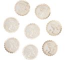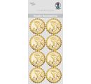 Opakowanie zawiera 8 okrągłych papierowych naklejek w kształcie przedmiotów wykonanych z wysokiej jakości papieru, z eleganckim nadrukiem w stylu reliefowym w kolorze kremowym i złotym.