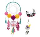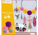 Dzięki temu rozbudowanemu zestawowi kreatywnemu Avenue Mandarine "Multi Activity Dreamy " mogą Państwo wykonać 3 rękodzieła jednocześnie. Zestaw zawiera wszystkie materiały do wykonania łapacza snów w kolorowym stylu boho, uroczego portfela w kształcie szopa pracza oraz breloczka w kształcie wilka z kolorowym nakryciem głowy.