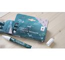 Należy zauważyć: Jest to marker permanentny ze zdejmowaną końcówką, którą można czyścić wodą. Może być ścierany z gładkich, zamkniętych powierzchni. Co najmniej 60% kolorowego tuszu pochodzi z surowców pozyskiwanych w sposób zrównoważony.