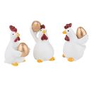 Zabawny zestaw kurczaków VBS "Humbeline" składa się z trzech kurczaków o wysokości ok. 4,5 cm i szerokości ok. 2 cm. Figurki wykonane są z polyresinu i każda z nich trzyma złote jajko, przyjmując przy tym różne pozy.