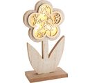 Wiosna może nadejść! Stojący kwiat VBS z oświetleniem LED ma wymiary ok. 9,5 x 17,5 cm i grubość ok. 1 cm. Materiał to drewno MDF, częściowo fornirowana sklejka i brokatowa folia zapewniająca wspaniałe efekty. Z tyłu znajduje się komora na 2 baterie CR2032. Kwiat jest po prostu wkładany do podstawy i ustawiany.