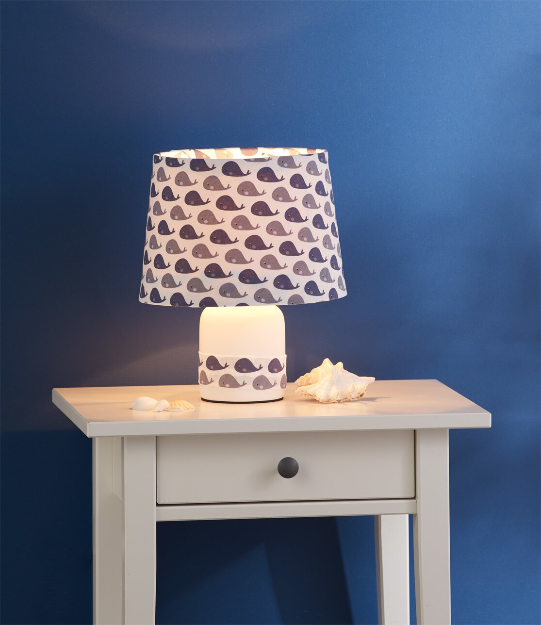 Udekoruj podstawę lampy kolejnym kawałkiem materiału. Następnie przykręć adapter i za jego pomocą abażur do podstawy lampy. Wszystko, czego potrzebujesz, to żarówka do gniazda E14.