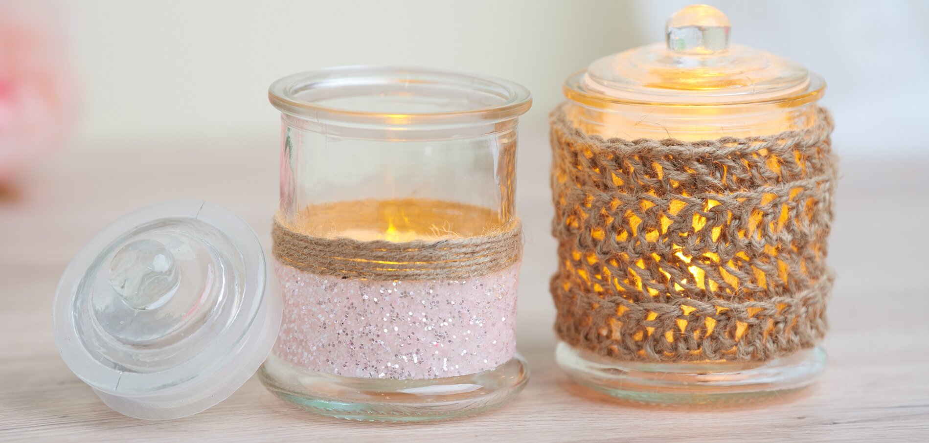 Przerabiać na szydełku do uzyskania pożądanej wysokości. Teraz umieść szydełkowy element wokół szklanki, końce można zszyć razem z końcem nici. Możesz jednak również użyć