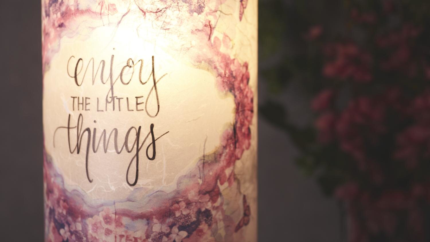 Gdy tylko upewnisz się, gdzie chcesz umieścić poszczególne części, usuń folię podkładową i przyklej serwetkę do folii lampy stroną z motywem skierowaną w dół.