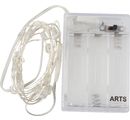 The macro LED light chain, 20 LEDs with a lamp size of approx. L 8 mm x W 5 mm is suitable for indoor use. Thanks to the battery compartment with switch, the light chain can be switched on and off as desired