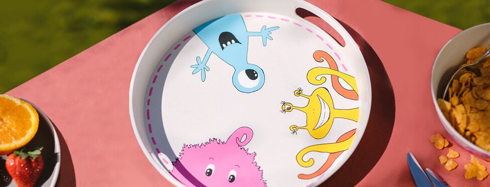 Pobierz nasz darmowy szablon i przenieś szablon motywu na tacę. Można to łatwo zrobić za pomocą papieru grafitowego. Pokoloruj za pomocą markerów, takich jak markery POSCA.