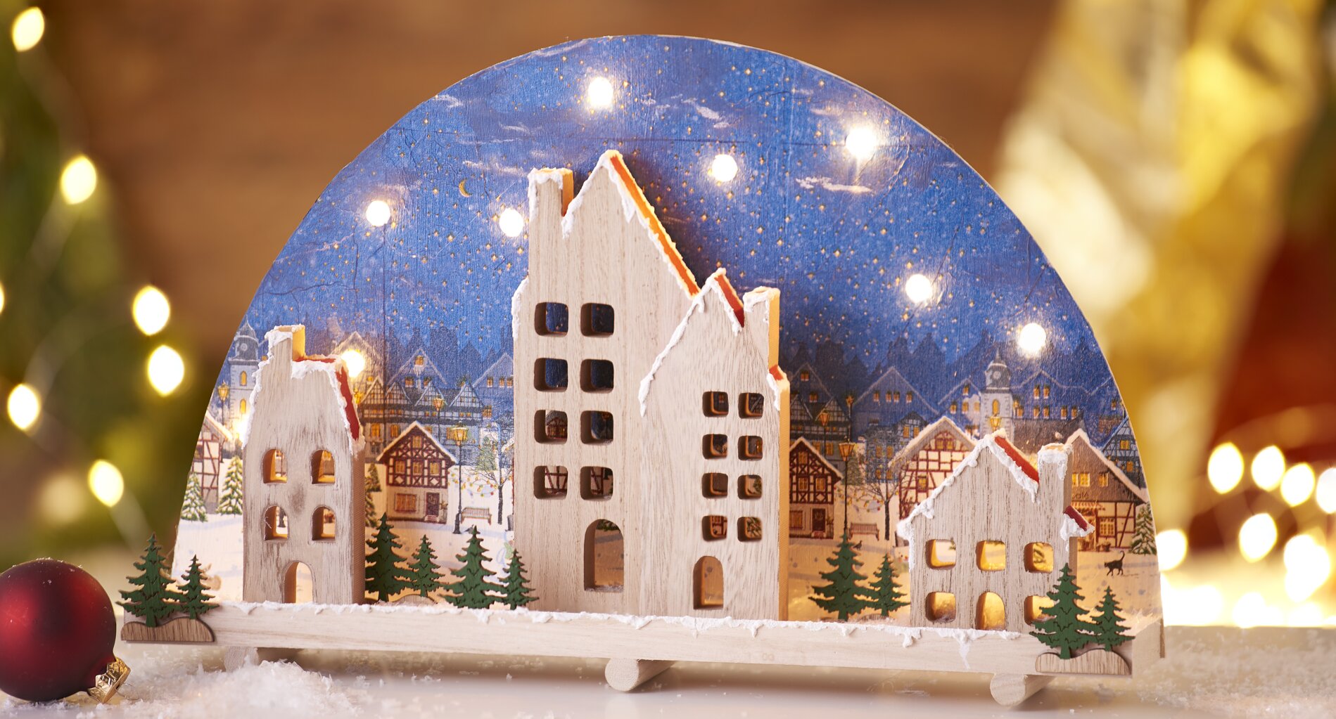 Ten podświetlany łuk rozświetla zimowy i świąteczny sezon. Został stworzony przy użyciu Techniki serwetkowej a następnie ozdobiony małymi elementami dekoracyjnymi i sznurkiem światełek. Wspaniały przedmiot dekoracyjny, który idealnie nadaje się do umieszczenia na parapecie lub komodzie.
