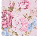 Ta piękna tkanina z motywem lnu "Rakel-Rose" ma szerokość 140 cm i gramaturę 170 g/m². Tkanina na metry z nadrukiem róży na różowym tle. Materiał składa się w 50% z bawełny i w 50% z poliestru.