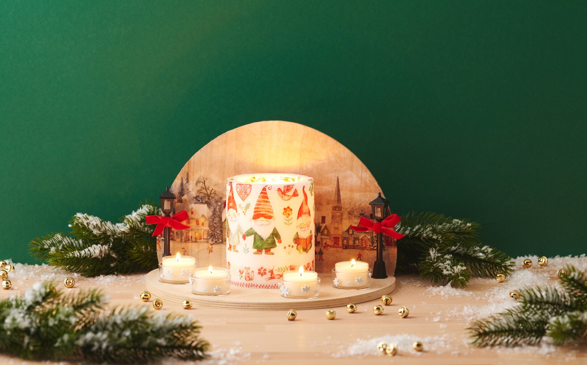 Teraz, gdy wszystkie części są gotowe, umieść udekorowaną świecę i podgrzewacze na łuku świecy. I voilà - Twoja idylliczna scena świetlna jest gotowa, by emanować zimową przytulnością!